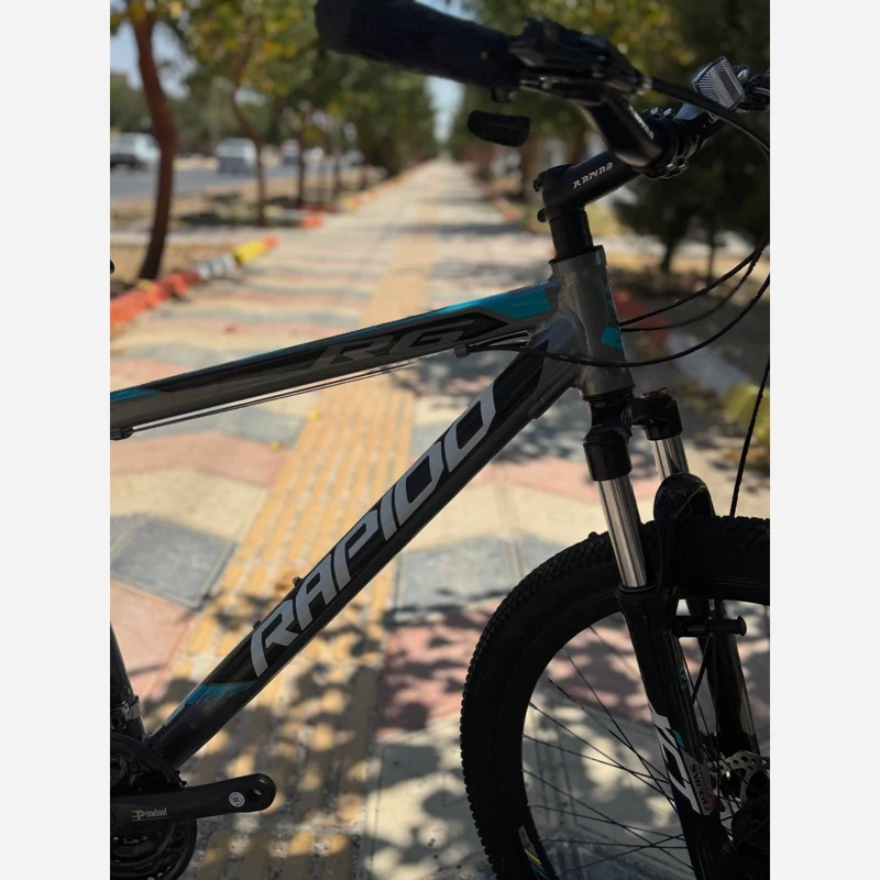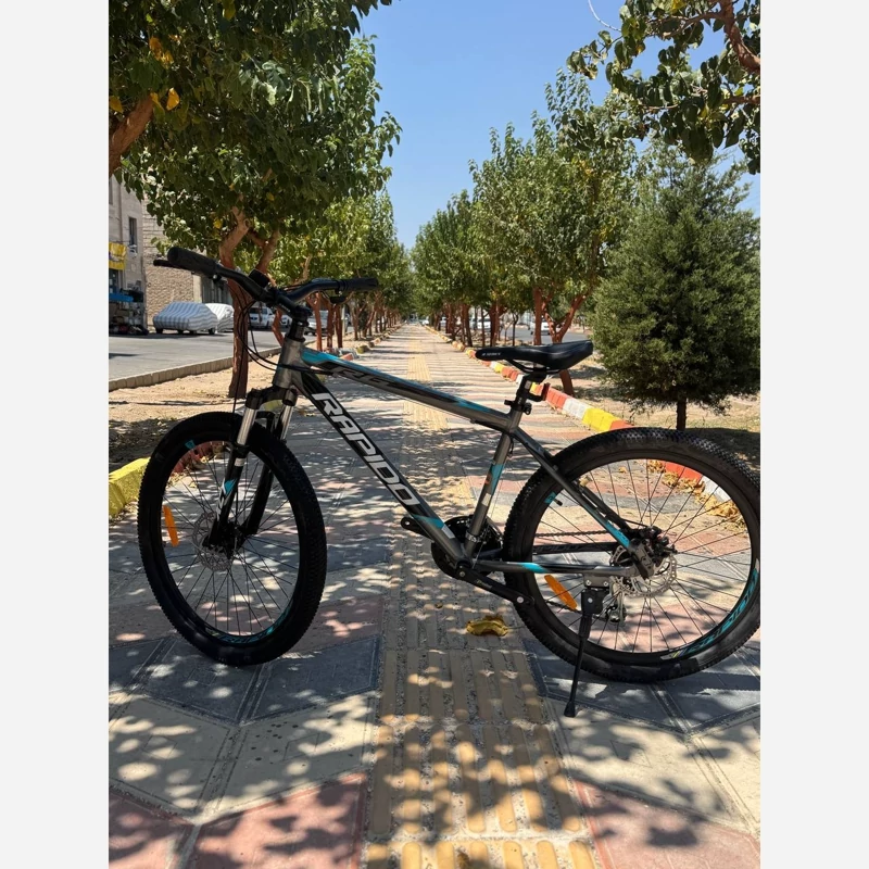 دوچرخه راپیدو سایز 26 مدل R6 مشخصات : الیاژ تنه آلومینیوم 6061 طوقه آلومینیوم 6061 تایر ابریشم Rapido میل تنه و جلو و عقب بلبرینگ سیستم دنده 24 سرعته آسرا نقره ای طبق قامه پروویل کرپی اوور neco فرمان اوور
