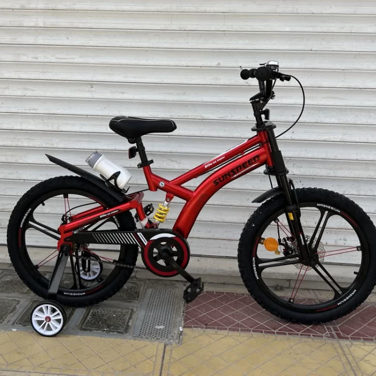 دوچرخه سایز ۲۰ سان اسپید مدل کوکو رینگ منیزیم بدنه آهن رینگ اسپرت قمقمه دارد کمک فنر جلو و وسط و ...