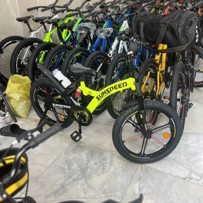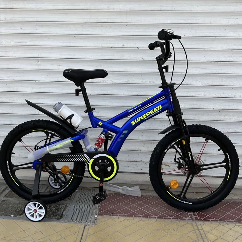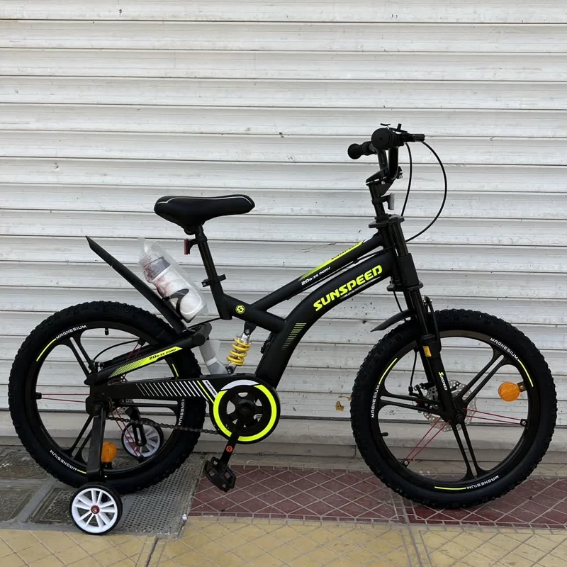 دوچرخه سایز ۲۰ سان اسپید مدل کوکو رینگ منیزیم بدنه آهن رینگ اسپرت قمقمه دارد کمک فنر جلو و وسط و ...